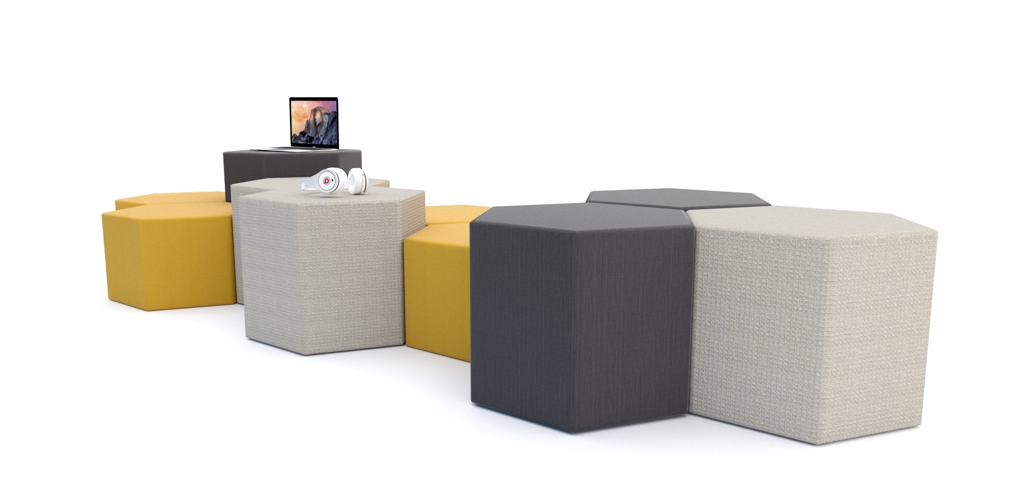 Composta por cinco peças – puff hexágono baixo, puff hexágono intermediário, puff hexágono alto, poltrona e sofá –, a linha Hexágono Grande oferece flexibilidade total para projetos de interiores, permitindo configurações dinâmicas e criativas. Seja para áreas de espera, salas de convivência ou ambientes colaborativos, os módulos hexagonais trazem funcionalidade e estilo, adaptando-se a qualquer necessidade.