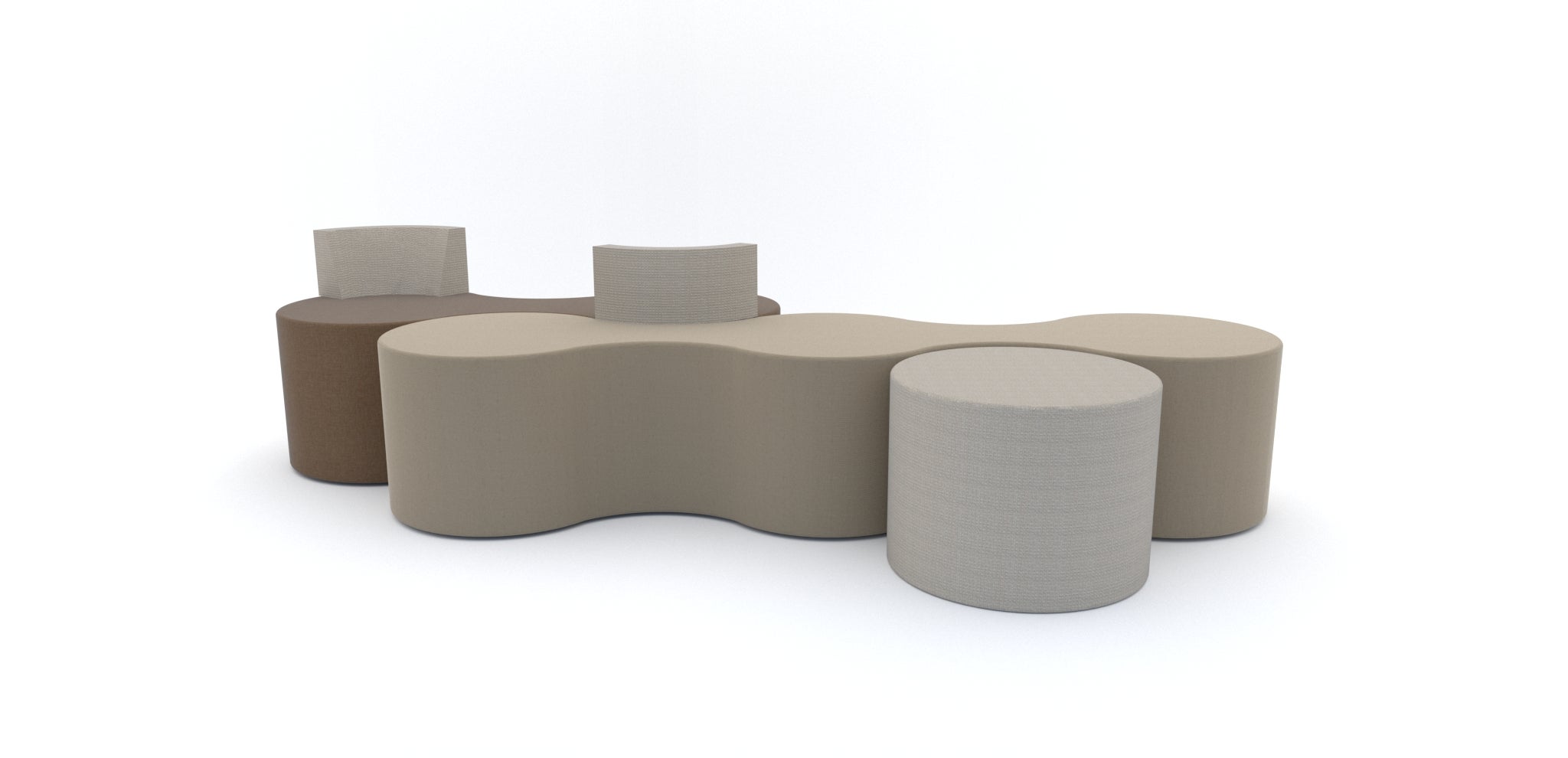A partir das formas orgânicas criamos os puffs Uno, Due, Tre que traz dinamismo e informalidade para o ambiente de trabalho. São peças complementares que permitem infinitas possibilidades na composição. Recentemente a família Uno, Due, Tre aumentou e as peças ganharam novas versões com encostos fixos.